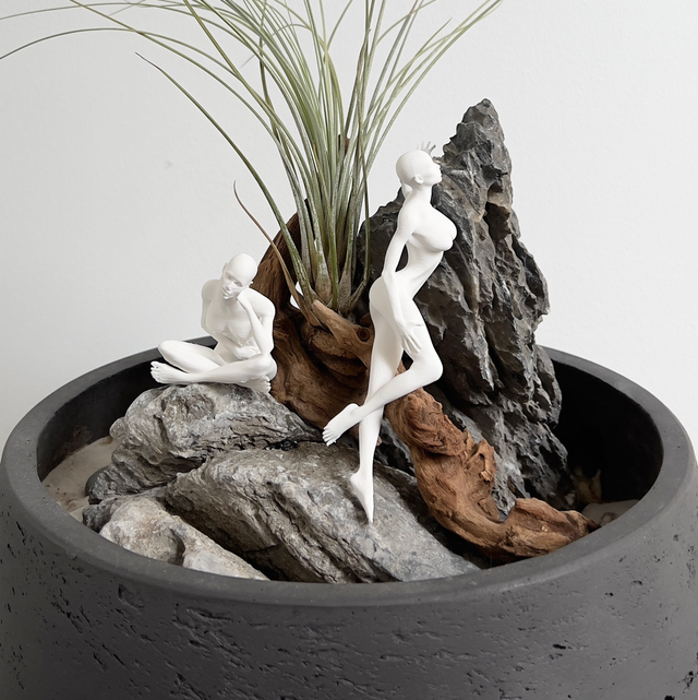 Miniature Feminine statue made to sit in planters, plant scapes or on small shelves and corners.