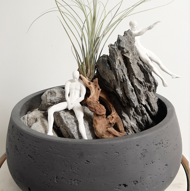 Miniature Masculine statue made to sit in planters, plant scapes or on small shelves and corners.