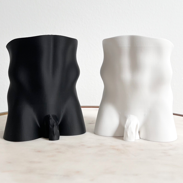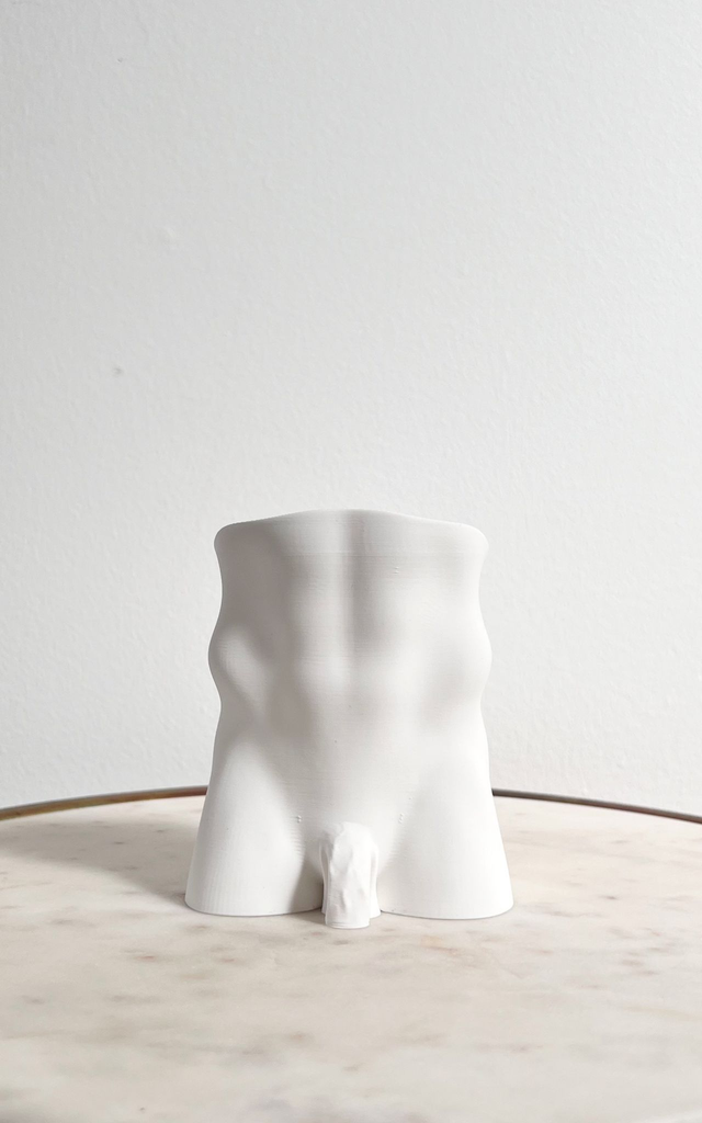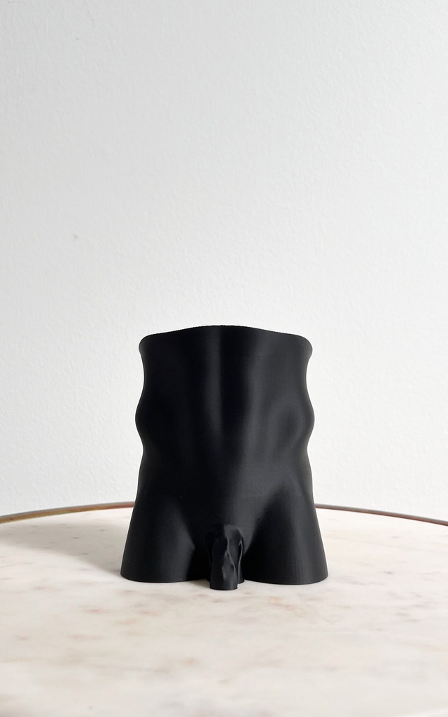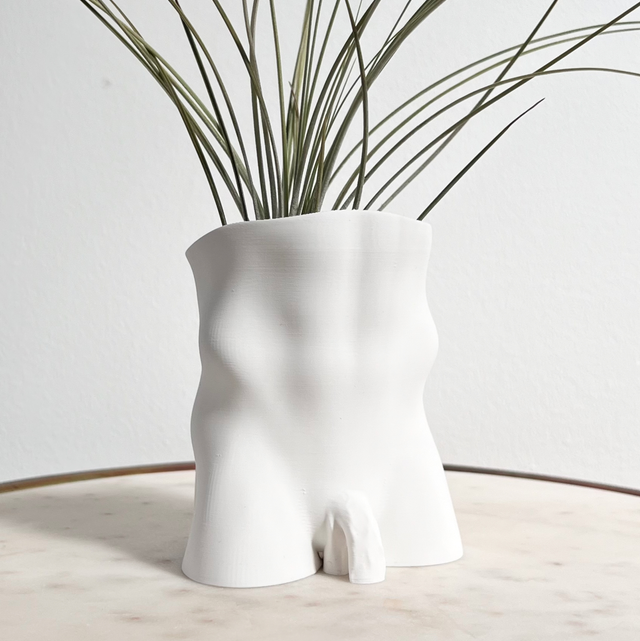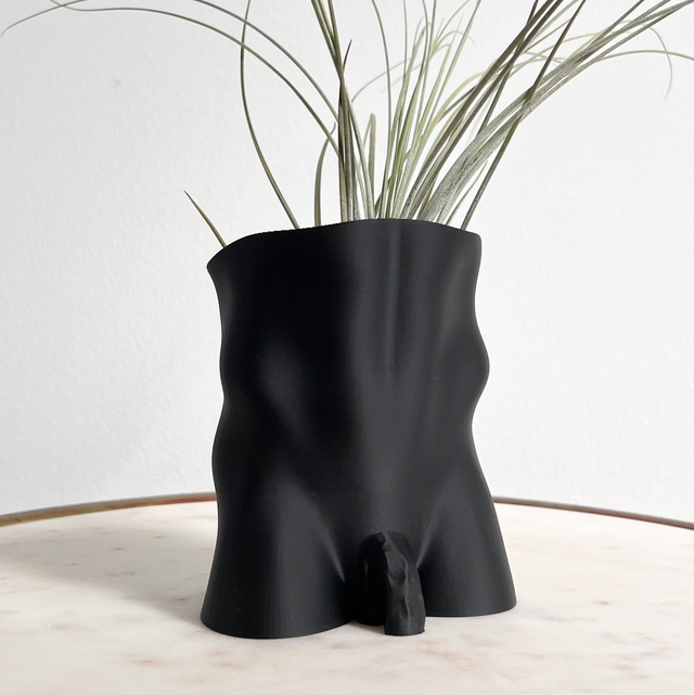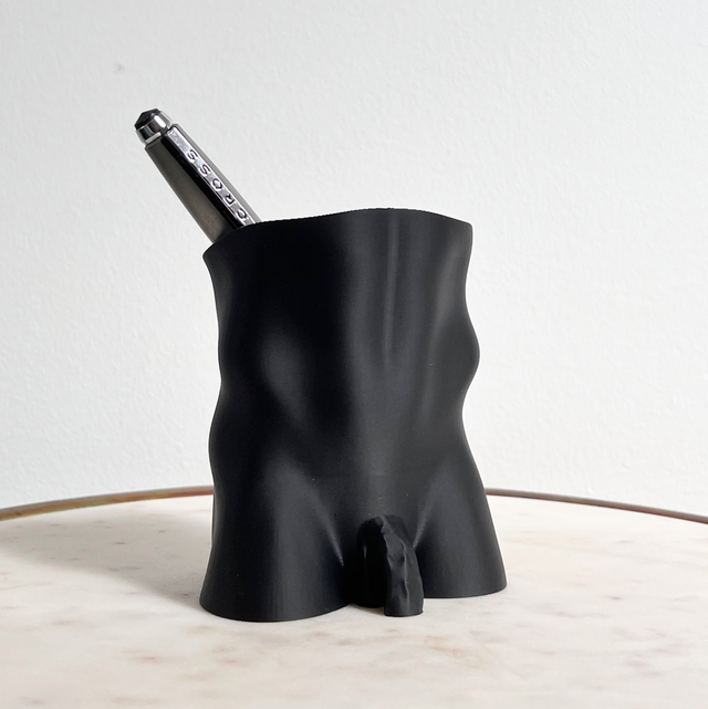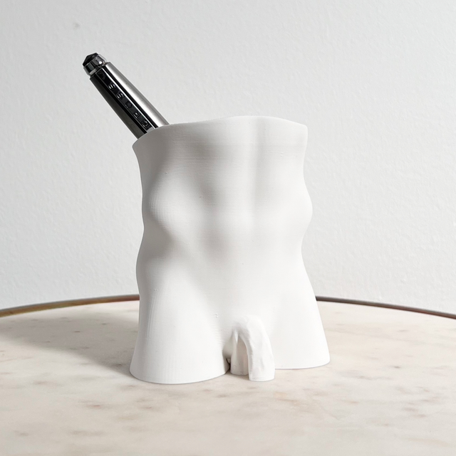A bold male form with a hollow center to hold pens, air plants, or whatever fits.